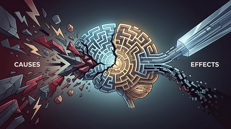 Ein wesentlicher neurobiologischer und psychologischer Mechanismus, der bei chronisch traumatisierten Individuen fast ausnahmslos massiv gestört ist, ist der Prozess der natürlichen, hierarchischen Reizverarbeitung. Ein gesundes, stressresistentes Gehirn folgt dem logischen Schema: Beobachten, dann in Ruhe Wahrnehmen, und schließlich angemessen Reagieren (ein geordnetes 1-2-3-Muster).26 Ein durch Trauma geprägtes Gehirn hingegen operiert unter Stress hochgradig reaktiv im Überlebensmodus: Es reagiert zuerst instinktiv, nimmt die eigentlichen Umstände viel zu spät kognitiv wahr, und kann die Situation erst im distanzierten Rückblick objektiv beobachten (ein dysfunktionales 3-2-1-Muster).26